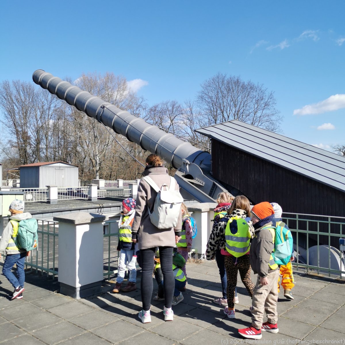 Ein besonderes Highlight war unser Besuch in der Archenhold Sternwarte. Wir haben uns das Programm „Raumschiff Erde“ angesehen. Hier konnten wir vom Weltall aus betrachten, wie die Erde um die Sonne fliegt und wie viele Lichter in der Nacht auf der Erde leuchten. Weiter ging es mit dem Planetariums Raumschiff zum Mond und seinen Kratern. Die Kinder tauchten hautnah in eine faszinierende Welt ein und konnten das Gelernte auf beeindruckende Weise erleben und vertiefen.